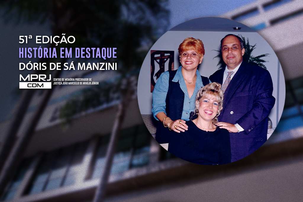O Centro de Memória Procurador de Justiça João Marcello de Araújo Júnior do Ministério Público do Estado do Rio de Janeiro (CDM/MPRJ) apresenta, na 51ª edição do projeto História em Destaque, a trajetória institucional da procuradora de Justiça Dóris de Sá Manzini, nascida em 1º de maio de 1957, na cidade do Rio de Janeiro, à época Distrito Federal. Formada em Direito, dedicou sua carreira ao cumprimento da Justiça. Ao longo de sete anos, atuou como oficial de Justiça Avaliador, até seu ingresso no MPRJ, em 1986, como promotora de Justiça de 2ª Categoria, por meio do 5º Concurso para ingresso na carreira.