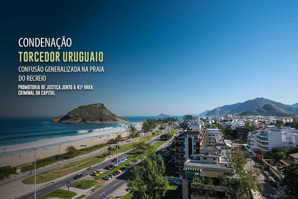 O Ministério Público do Estado do Rio de Janeiro (MPRJ), por meio da Promotoria de Justiça junto à 41ª Vara Criminal da Capital, obteve a condenação de um torcedor do time uruguaio Peñarol que participou da confusão generalizada na orla da Praia do Recreio dos Bandeirantes, na Zona Oeste do Rio, em 23 de outubro do ano passado. O uruguaio Ezequiel Rodrigues foi sentenciado a seis anos de prisão pelos crimes de associação criminosa armada, incêndio e corrupção de menores.