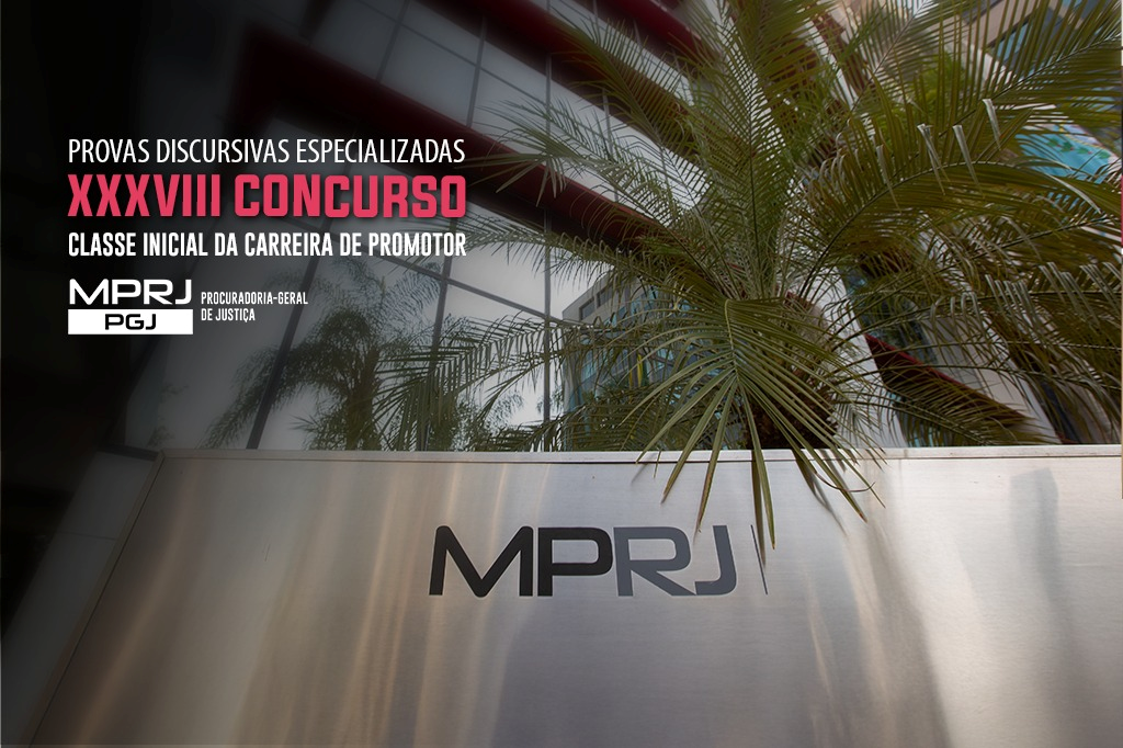 O Ministério Público do Estado do Rio de Janeiro (MPRJ) informa que as provas discursivas especializadas do XXXVIII Concurso para Ingresso na Classe Inicial da Carreira da instituição serão aplicadas nos dias 21 e 28 de setembro, 5 e 12 de outubro, na Universidade Estácio de Sá – Campus Tom Jobim, na Barra da Tijuca (Av. das Américas, nº 4.200, Bloco 11, Centro Empresarial Barra Shopping).