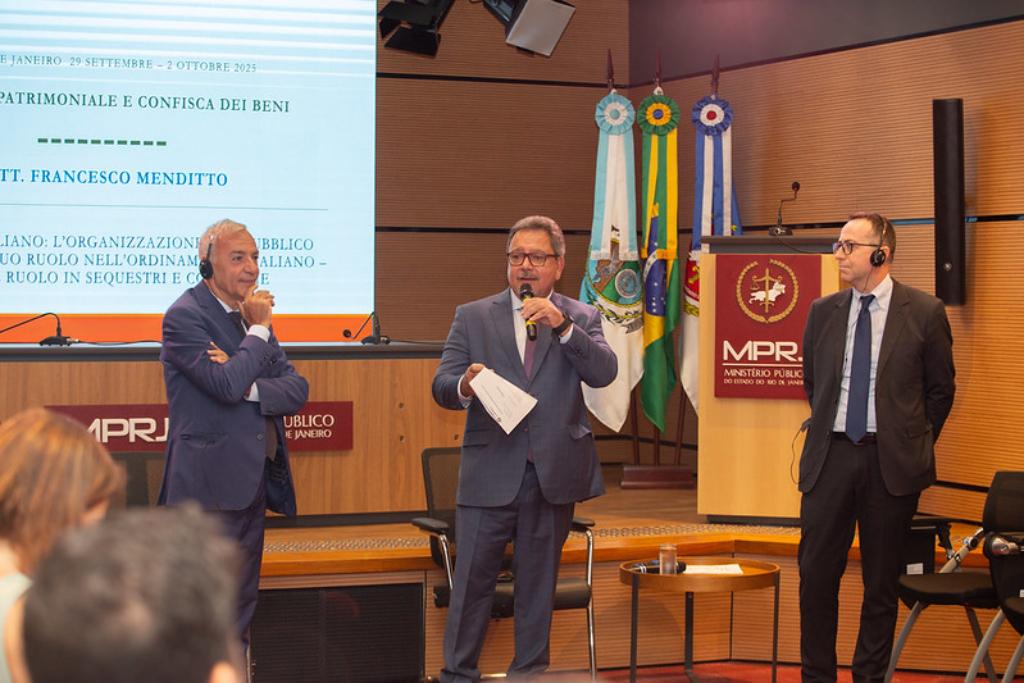O Ministério Público do Estado do Rio de Janeiro (MPRJ), por meio da Assessoria Internacional e do Instituto de Educação Roberto Bernardes Barroso (IERBB/MPRJ), promoveu, nesta segunda-feira (29/09), a abertura do workshop “Investigação Patrimonial e Confisco de Bens”, que contou com a participação do procurador da República italiano Francesco Menditto e do coronel da Guardia di Finanza, Stefano Pignoloni. A Guardia é uma força militar especializada em crimes financeiros, com competências para combater o terrorismo, o tráfico de drogas e de armas, além de realizar investigações sobre fraudes fiscais, contrabando e lavagem de dinheiro. O evento, realizado no Auditório Vera Leite, tem duração de quatro dias.