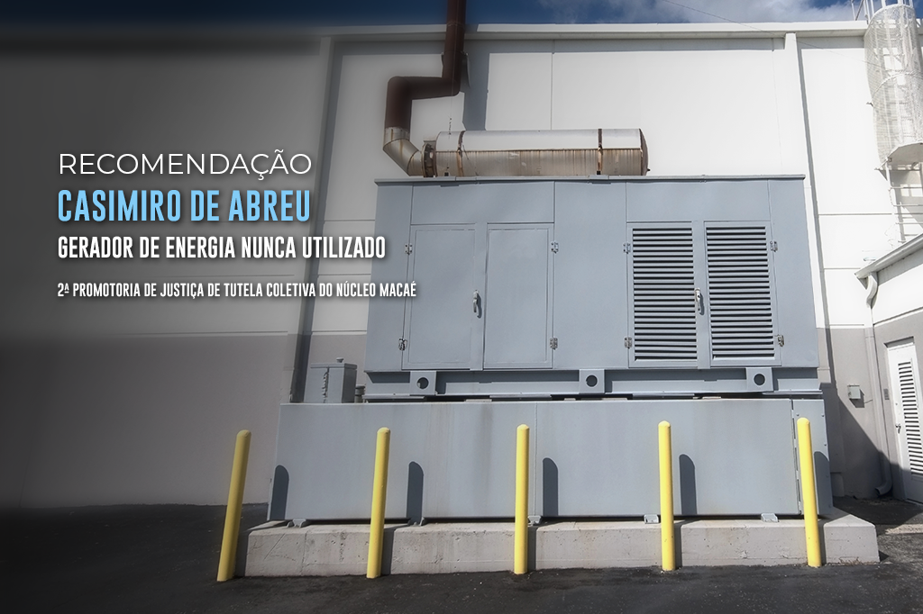 O Ministério Público do Estado do Rio de Janeiro (MPRJ), por meio da 2ª Promotoria de Justiça de Tutela Coletiva do Núcleo Macaé, expediu Recomendação para que o presidente do Serviço Autônomo de Água e Esgoto (SAAE – Águas de Casimiro) determine de que forma será utilizado um gerador de energia a diesel adquirido pela empresa, em caráter emergencial, no ano de 2023. De acordo com o MPRJ, o equipamento foi comprado devido a supostas interrupções no fornecimento de energia elétrica que comprometiam o funcionamento da estação de tratamento de água, mas o problema foi solucionado antes que o gerador fosse utilizado.