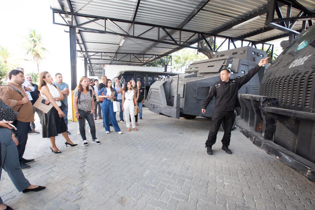 Ao final da atividade, os promotores também conheceram táticas operacionais com cães treinados e veículos blindados utilizados em terrenos conflagrados.