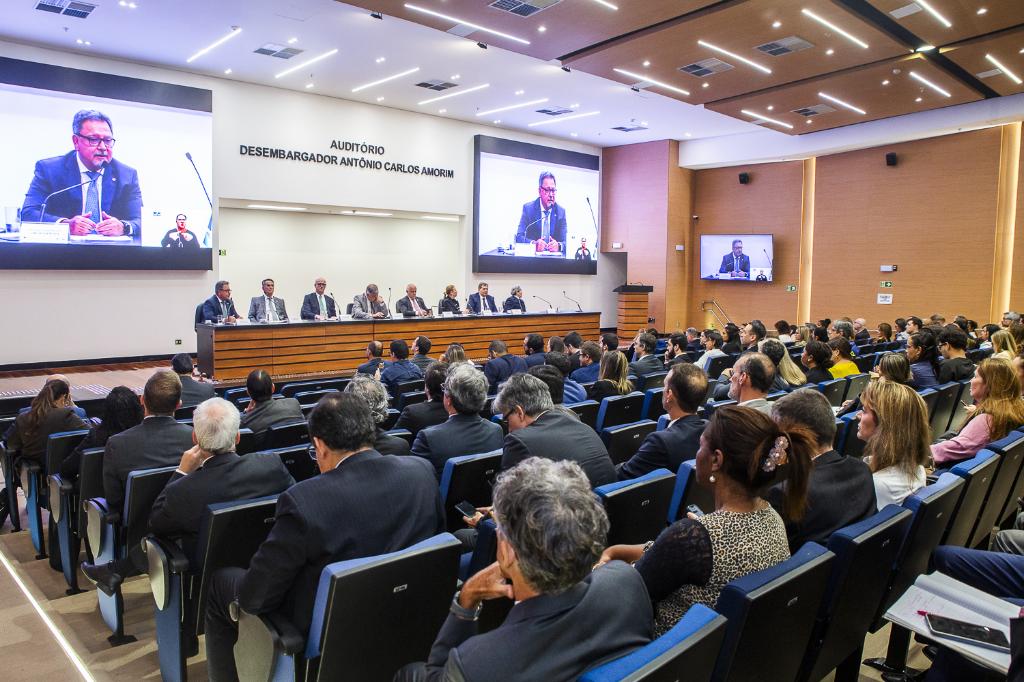 O procurador-geral de Justiça, Antonio José Campos Moreira, participou nesta segunda-feira (20/10), da abertura do evento “Organizações criminosas e eleições”, que reuniu integrantes do sistema de Justiça para debater a influência exercida pelo crime organizado no processo eleitoral. O encontro foi realizado no auditório Desembargador Antônio Carlos Amorim, na sede do Tribunal de Justiça do Rio de Janeiro (TJ-RJ), e contou com palestras de especialistas,