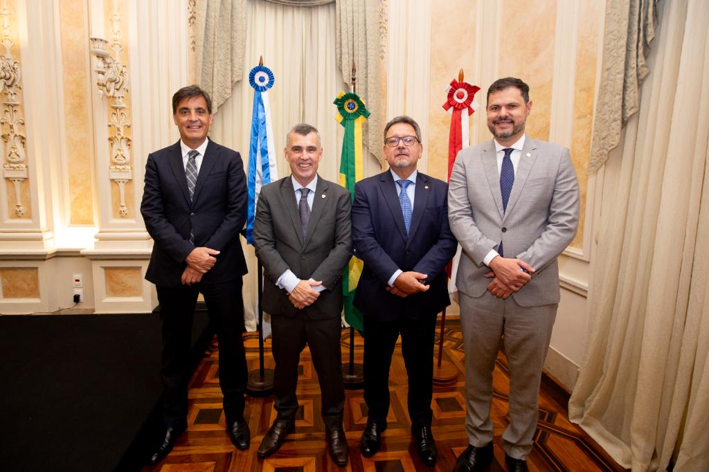 O procurador-geral de Justiça, Antonio José Campos Moreira, participou, nesta quinta-feira (23/10), da solenidade de recondução do procurador regional do Trabalho Fabio Goulart Villela ao cargo de procurador-chefe do Ministério Público do Trabalho no Rio de Janeiro (MPT-RJ) para o biênio 2025/2027. Fabio Goulart Villela foi eleito com os votos de todos os membros da Regional.