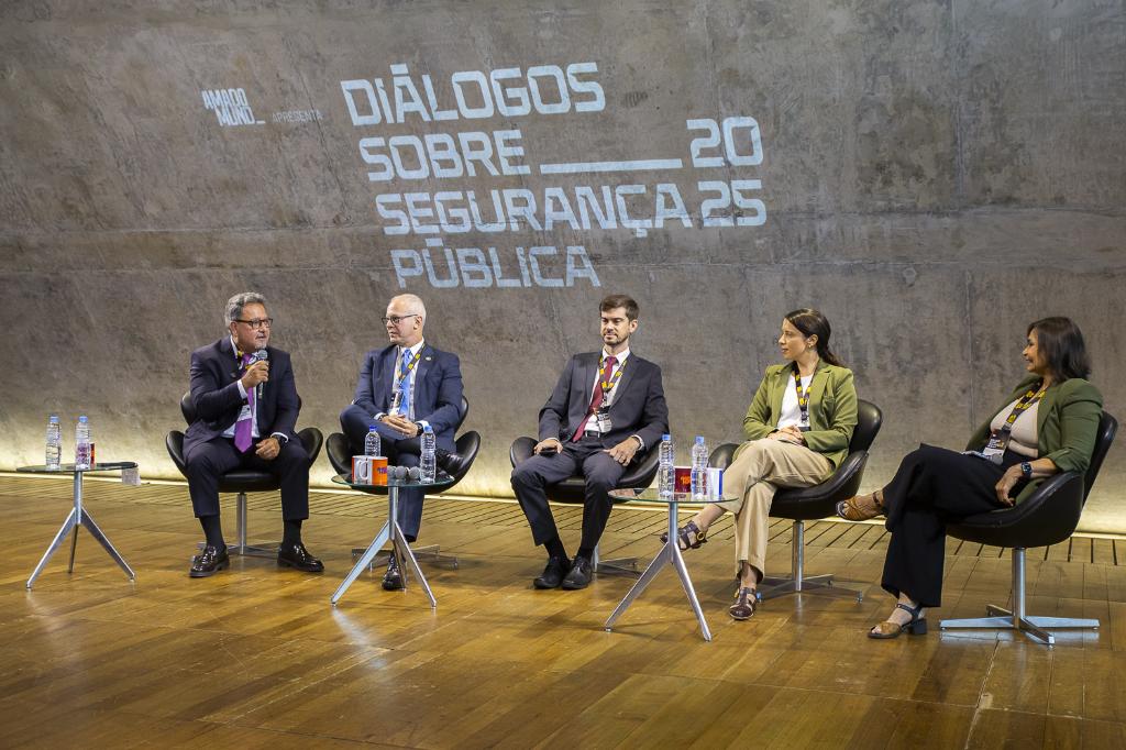 O painel foi mediado pela jornalista Vera Araújo e contou ainda com o secretário de Segurança Pública do Estado, Victor Santos; o coordenador de Repressão a Crimes Violentos da Polícia Federal, delegado Renato Beni; e a diretora de projetos do Instituto Sou da Paz, Natália Pollachi.