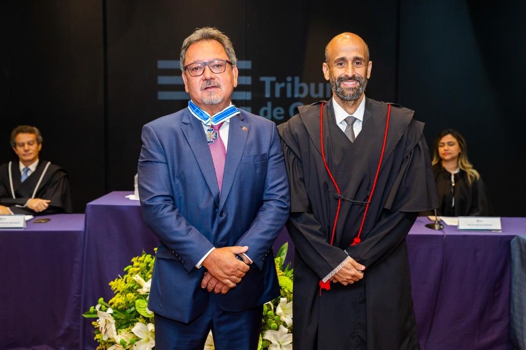 O procurador-geral de Justiça, Antonio José Campos Moreira, e o coordenador do Grupo de Atuação Especializada de Defesa da Integridade e Repressão à Sonegação Fiscal (GAESF/MPRJ), Décio Luiz Alonso Gomes, foram agraciados com o Colar do Mérito do Tribunal de Contas do Estado do Rio de Janeiro (TCE-RJ), em cerimônia realizada nesta segunda-feira (10/11), na sede do órgão.