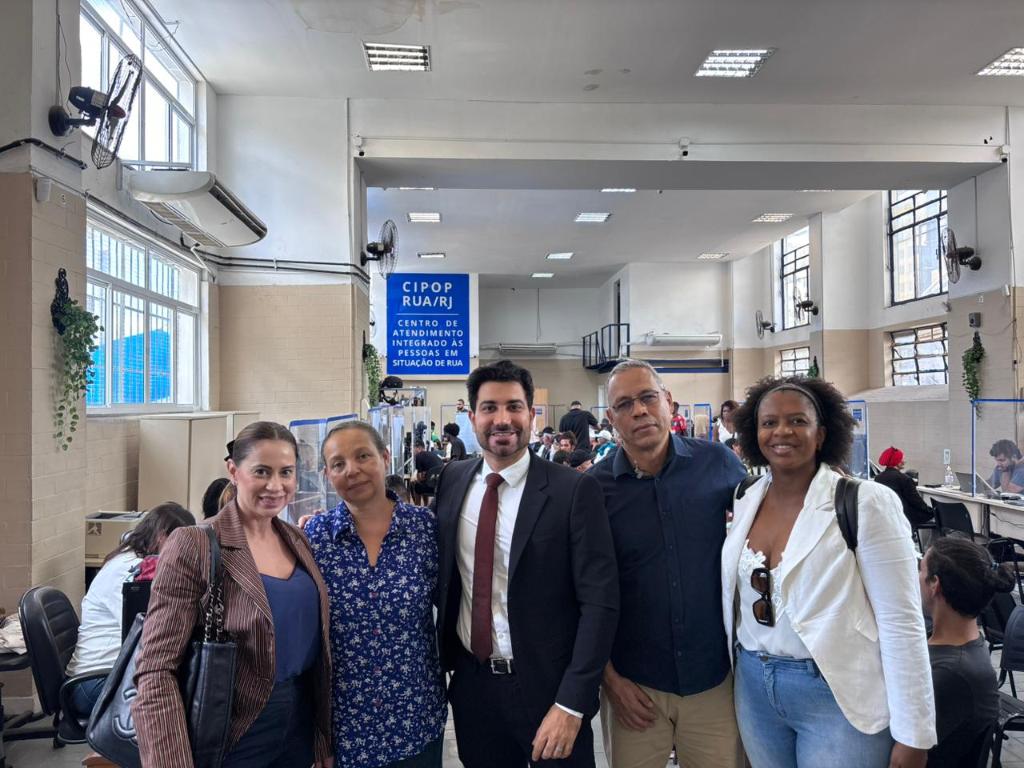 Os promotores de Justiça Marcele Navega e Tiago Veras conheceram a estrutura física do espaço, o fluxo de atendimento e os serviços ofertados, além de dialogarem com colaboradores e usuários, com foco na garantia de direitos humanos às pessoas em situação de vulnerabilidade social. O CIPOP Rua/RJ realiza aproximadamente 180 atendimentos diários e tem se consolidado como porta de entrada para a inclusão social de pessoas em extrema vulnerabilidade, conforme destacou a coordenação da unidade.