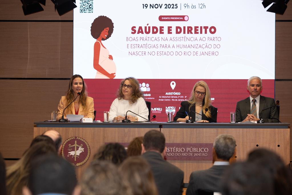 O Ministério Público do Estado do Rio de Janeiro (MPRJ) promoveu, nesta quarta-feira (19/11), o evento “Saúde e Direito: boas práticas na assistência ao parto e estratégias de humanização do nascer no Estado do Rio de Janeiro”, que teve como objetivo discutir diretrizes de qualificação do cuidado materno e de redução da mortalidade materna. O encontro, organizado pelo Centro de Apoio Operacional de Tutela Coletiva da Saúde (CAO Saúde/MPRJ), pelo Núcleo de Apoio às Vítimas (NAV/MPRJ), pelo Centro de Apoio de Combate à Violência Doméstica e Familiar contra a Mulher (CAOVC/MPRJ) e pelo Núcleo de Gênero, reuniu, no auditório Vera Leite, membros do Ministério Público, profissionais de saúde, pesquisadores e parlamentares.
