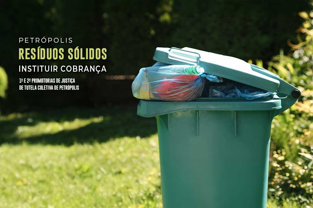 O Ministério Público do Estado do Rio de Janeiro (MPRJ), por meio das Promotorias de Justiça de Tutela Coletiva de Petrópolis, expediu uma recomendação à Prefeitura de Petrópolis e à Companhia Municipal de Desenvolvimento de Petrópolis (COMDEP) para que seja instituída uma cobrança específica pelos serviços de manejo de grandes geradores de resíduos sólidos urbanos. A recomendação não se refere à taxa de lixo já existente no município e vinculada ao IPTU, que cobre a coleta e destinação dos resíduos domiciliares e comerciais equiparados.