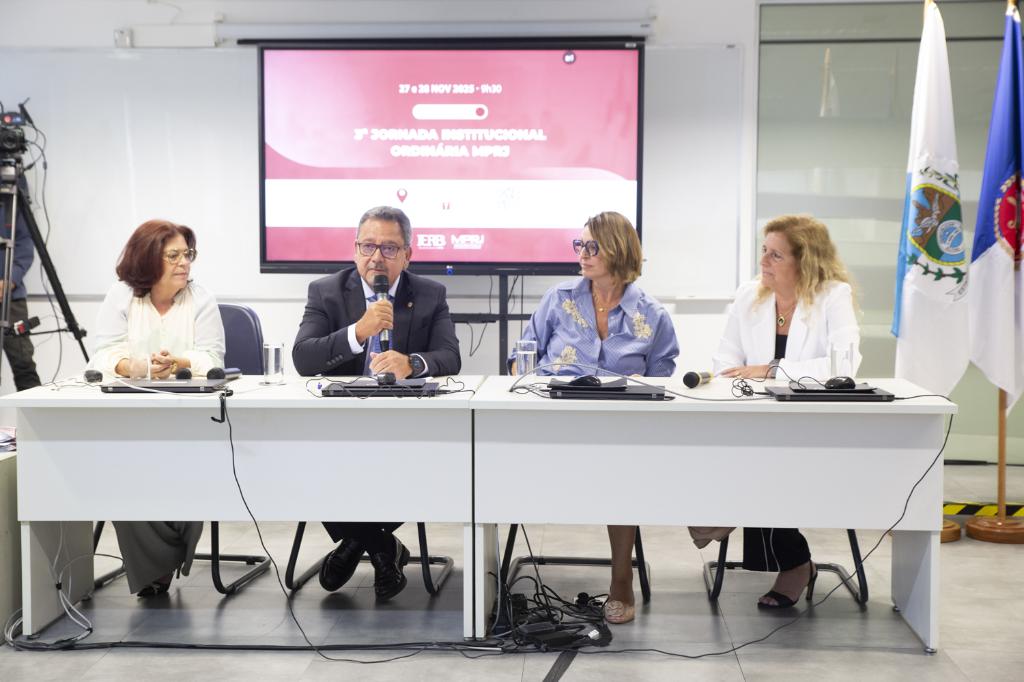 Promovida pela Subprocuradoria-Geral de Justiça de Planejamento Institucional (SUBPLAN/MPRJ) e pelo IERBB/MPRJ, a Jornada ocorreu em formato híbrido, presencial e remoto, e contou com mediação do secretário-geral do MPRJ, Roberto Goes; do vice-diretor do IERBB, Alexandre Joppert; e da coordenadora de Planejamento Institucional, Claudia Condack.