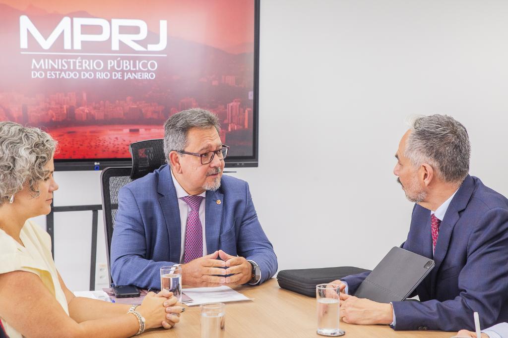 O procurador-geral de Justiça, Antonio José Campos Moreira, recebeu, nesta sexta-feira (05/12), uma comitiva da Comissão Interamericana de Direitos Humanos (CIDH). Durante o encontro, o PGJ apresentou todos os passos da investigação conduzida pelo Ministério Público do Estado do Rio de Janeiro (MPRJ) no âmbito da Operação Contenção, além de destacar as medidas que vêm sendo adotadas, desde o início da atual gestão, em cumprimento à ADPF 635, conhecida como “ADPF das Favelas”. A comitiva, liderada pelo presidente da CIDH, José Luis Caballero, contou também com a presença do chefe da Divisão de Direitos Humanos do Ministério das Relações Exteriores, Eduardo Galvão.
