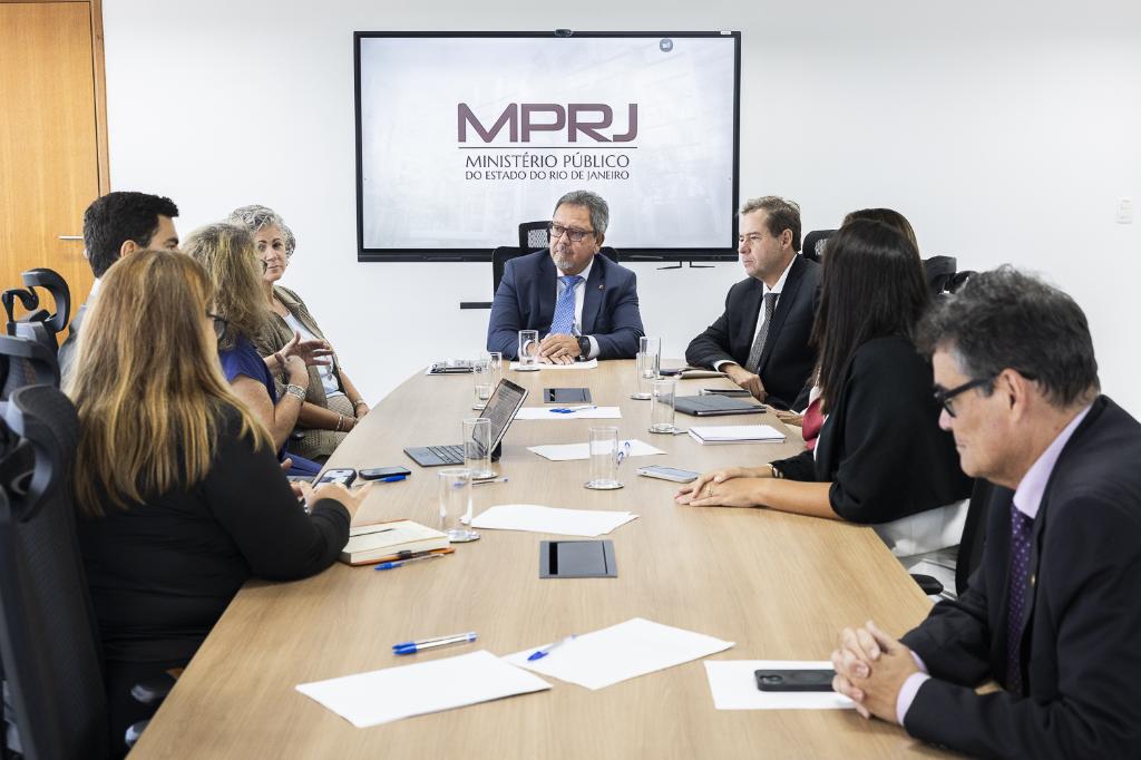 A primeira reunião do dia contou com a presença dos subprocuradores-gerais de Justiça de Atribuição Originária, Marcelo Pereira Marques; de Direitos Humanos e Proteção à Vítima, Patrícia Glioche; de Planejamento Institucional, Andréa Amin; de Atuação Especializada, Cláudio Varela; e de Recursos Constitucionais, Inês Andreiuolo; além do chefe de gabinete, Guilherme Schueler; da assessora da Chefia de Gabinete e assessora internacional, Carina Senna; e do assessor especial da Procuradoria-Geral de Justiça, Rodrigo Molinaro.