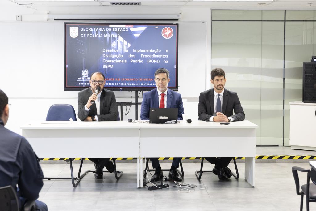 O major Leonardo Oliveira Tognoc, da Polícia Militar do Estado do Rio de Janeiro (PMERJ), relatou os desafios na implementação e na divulgação dos Procedimentos Operacionais Padrão (POPs) junto à corporação, formada por cerca de 47 mil policiais. Ele ressaltou que os POPs já são considerados parte de uma infraestrutura de qualidade da atividade policial, mas que a adoção plena exige liderança presente e conteúdo de qualidade, citando aulas virtuais gravadas como exemplo de potencialização das instruções.