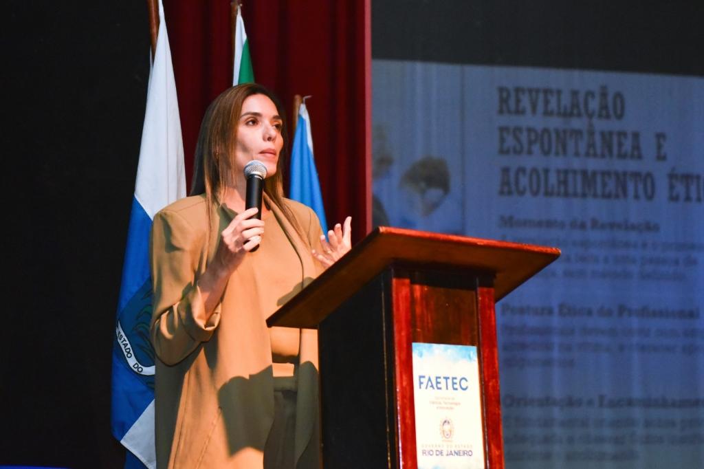 O Ministério Público do Estado do Rio de Janeiro (MPRJ) participou, na manhã desta quarta-feira (11/03), do seminário “Tolerância Zero”, realizado no Teatro Abdias do Nascimento, na Faculdade de Educação Tecnológica do Estado do Rio de Janeiro (FAETEC), em Quintino Bocaiúva, Zona Norte do Rio. A instituição foi representada pela promotora de Justiça Raquel Madruga do Nascimento, subcoordenadora do Centro de Apoio Operacional das Promotorias de Justiça da Infância e da Juventude – área não infracional (CAO Infância e Juventude/MPRJ), em atuação conjunta com o Núcleo de Gênero (NUGEN/MPRJ).