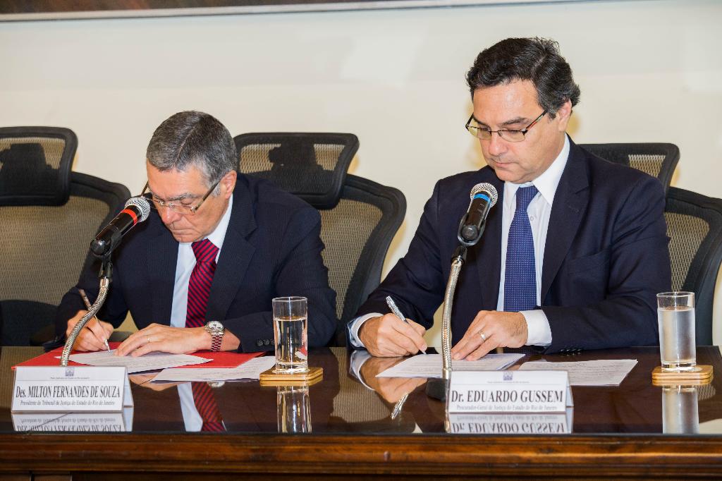 O presidente do TJRJ, Milton Fernandes, também destacou a importância da cooperação para otimizar o trabalho das instituições: “O Gussem já tinha falado, desde o início da gestão dele, que coincidiu com a minha, para tomarmos iniciativas conjuntas em determinados assuntos que facilitam a diminuição de preço, a procura por produtos. Essas iniciativas são sempre muito bem vindas” disse o desembargador, durante a abertura da solenidade.
