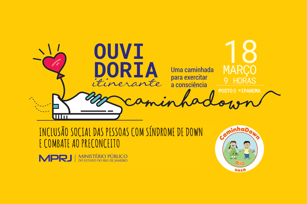 O Ministério Público do Estado do Rio de Janeiro (MPRJ), por meio da Ouvidoria Itinerante, vai participar da ação CaminhaDown 2018, que será realizada às 9h do próximo domingo (18/03), no Posto 8, em Ipanema. Aberto ao público, o evento faz parte das celebrações do Dia Internacional da Síndrome de Down – 21 de março – e tem como objetivo chamar a atenção para a necessidade de inclusão social desses brasileiros e combater o preconceito de que são vítimas. No Brasil, segundo o IBGE, mais de 300 mil habitantes têm a síndrome.