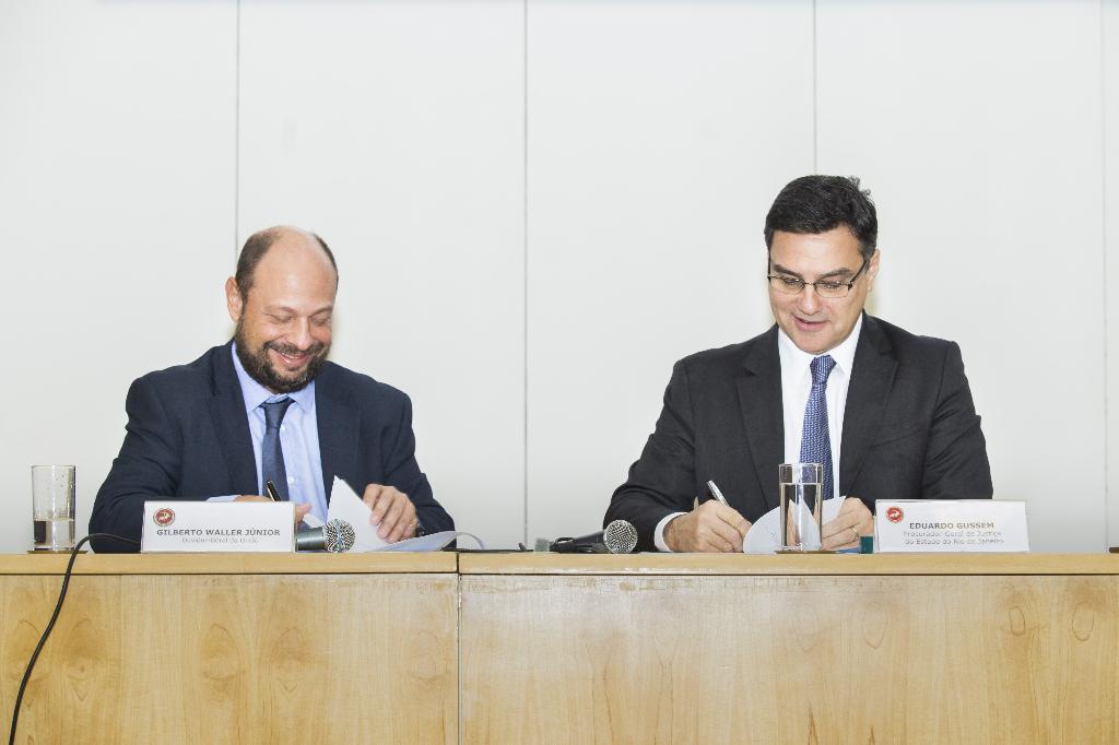 Durante o encontro, o procurador-geral de Justiça, Eduardo Gussem, assinou acordo com o ouvidor-geral da União, Gilberto Waller Júnior, para cooperação técnica e o intercâmbio de dados, conhecimentos, informações e experiências, visando ao fortalecimento e disseminação de mecanismos de participação social, e avaliação de políticas públicas, no âmbito das Ouvidorias. "O Ministério Público do Estado do Rio de Janeiro vem adotando, acima de tudo uma linha preventiva, resolutiva, que estimula o diálogo e a interlocução com as instituições do executivo, do legislativo do judiciário e as demais. Tanto que hoje estamos aqui para firmar um convenio com a CGU na linha da Ouvidoria”, comentou Gussem, antes de assinar o termo: “Temos adotado a linha de governo aberto, que contempla transparência, participação cidadã, integridade, tecnologia e inovações. Firmamos convênios com diferentes órgãos e estimulamos os senhores a seguir o mesmo caminho”, disse aos representantes dos municípios.