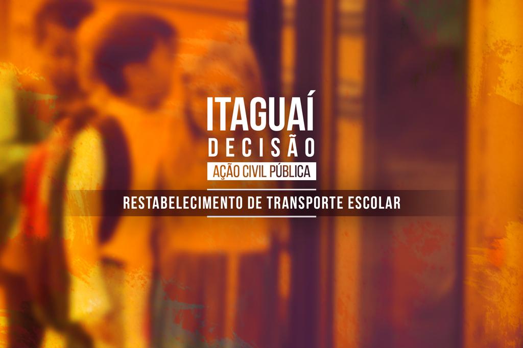 O Ministério Público do Estado do Rio de Janeiro (MPRJ), por intermédio da Promotoria de Justiça de Tutela Coletiva da Educação, do Núcleo de Nova Iguaçu, obteve no último dia 04/09 junto à Vara da Família, da Infância, da Juventude e do Idoso de Itaguaí, decisão favorável para que o município restabeleça o serviço de transporte escolar público e gratuito para os alunos das escolas rurais Camilo Cuquejo e Santa Rosa. Em agosto deste ano, a promotora de Justiça Daniela Caravana, da Promotoria de Justiça de Tutela Coletiva da Educação, ajuizou Ação Civil Pública com pedido de antecipação de tutela para que a prefeitura retomasse o serviço em um prazo máximo de 48 horas.