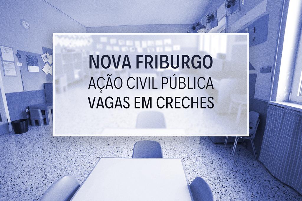 O Ministério Público do Estado do Rio de Janeiro (MPRJ), por meio da Promotoria de Justiça da Infância e da Juventude de Nova Friburgo, ajuizou ação civil pública (ACP) contra o município, com pedido de liminar, para obrigá-lo a realizar um levantamento da real demanda de vagas em creche e para que construa novas unidades de ensino infantil. A ação foi ajuizada junto à 1ª Vara de Família, Infância e da Juventude e do Idoso da Comarca de Nova Friburgo.