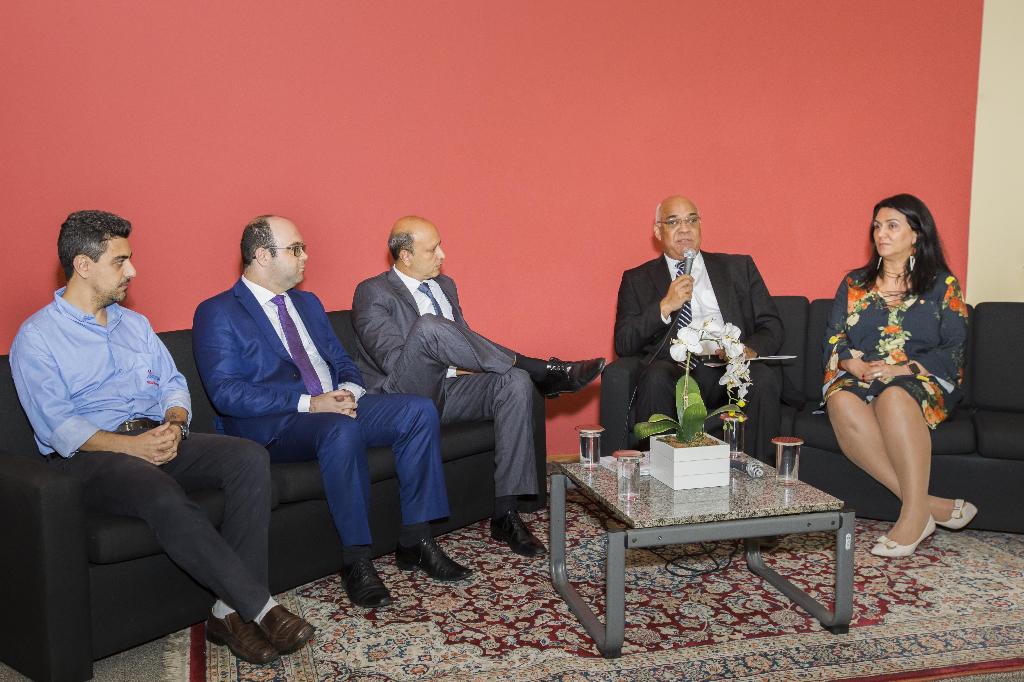 A mesa de abertura da Semana do Servidor contou com a presença, da corregedora-geral do MPRJ, a procuradora de Justiça Luciana Sapha, do secretário-Geral do MPRJ, o promotor de Justiça Dimitrius Viveiros, do assessor da Secretaria-Geral, Rafael Pacheco e do presidente da Associação dos Servidores do MPRJ (Assemperj), Flávio Sueth, além de diversos servidores que se acomodaram no Foyer do 9º andar do edifício-sede.