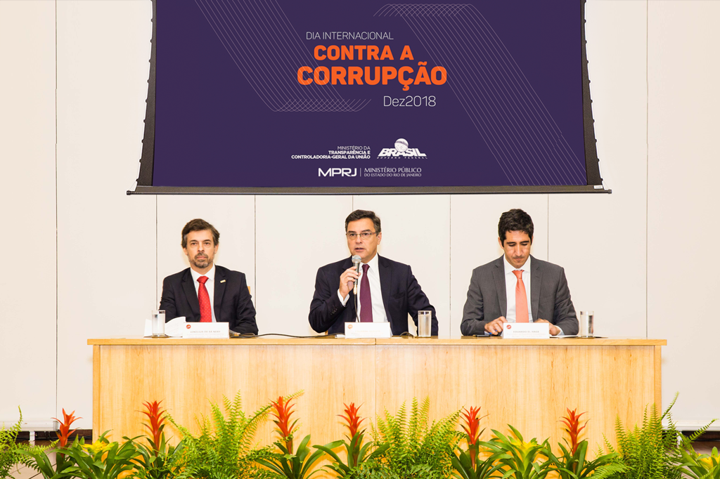 O Ministério Público do Estado do Rio de Janeiro (MPRJ) sediou, nesta quarta-feira (12/12), no auditório do edifício-sede, evento para celebrar o Dia Internacional Contra a Corrupção. Promovido pela Controladoria-Geral da União (CGU), o encontro contou com apresentações de representantes do MPRJ, do Ministério Público Federal (MPF) e da Controladoria Geral da União (CGU), além do lançamento da Escala Brasil Transparente (EBT) – 360º 2019 e da premiação do 10º Concurso de Desenho e Redação da CGU.