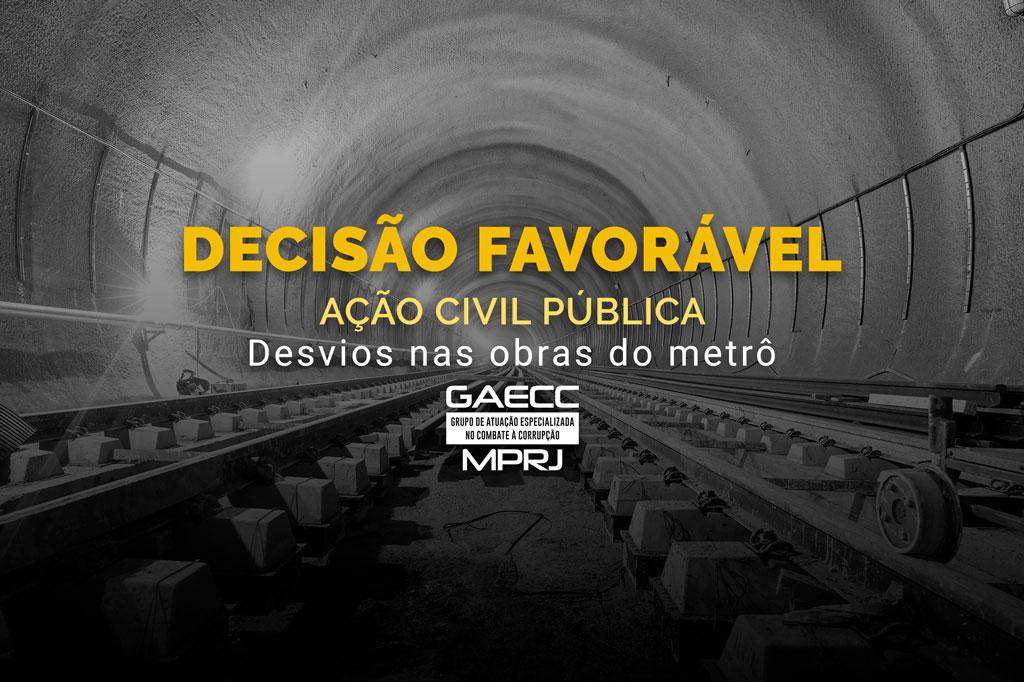 O Ministério Público do Estado do Rio de Janeiro (MPRJ), por meio do Grupo de Atuação Especializada no Combate à Corrupção (GAECC/MPRJ), obteve decisão favorável na Justiça à ação civil pública (ACP) por improbidade administrativa com dano ao erário, que solicitou a indisponibilidade de bens dos acusados de desviarem recursos públicos durante as obras de integração das Linhas 1 e 4 do metrô, entre eles o ex-governador Sérgio Cabral. De acordo com a decisão da juíza titular da 3ª Vara da Fazenda Pública, 12 pessoas e a CBPO Engenharia Ltda. (sociedade empresária controlada pelo Grupo Odebrecht), responsável pela obra, tiveram seus bens bloqueados.