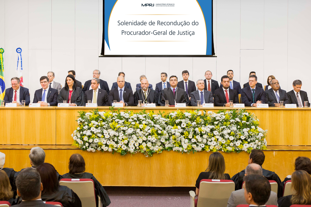 Eduardo Gussem foi reconduzido, nesta segunda-feira (14/01), ao cargo de procurador-geral de Justiça do Ministério Público do Estado do Rio de Janeiro (MPRJ) para o biênio 2019/2021, em solenidade no auditório do edifício-sede. O PGJ foi nomeado pelo governador do Estado, Wilson Witzel, em decreto do dia 2 de janeiro deste ano. Gussem foi escolhido como o único candidato inscrito em eleição realizada entre os membros do MPRJ em 3 de dezembro de 2018 (ele recebeu 93.2% dos votos válidos - que corresponde a 750 votos dos 804).