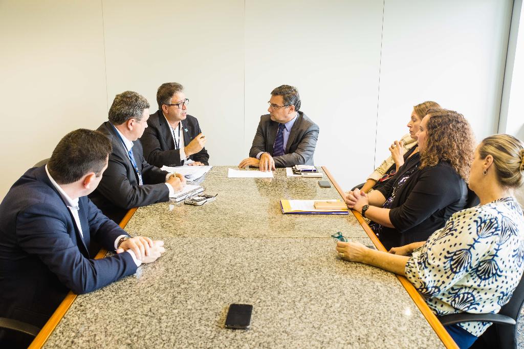 O procurador-geral de Justiça, Eduardo Gussem, recebeu nesta quinta-feira (14/02) o secretário estadual de Administração Penitenciária (Seap), Alexandre Azevedo, acompanhado do subsecretário geral da pasta, Ricardo Alexandre Naldoni. No encontro, os dirigentes demonstraram ao PGJ as iniciativas que estão sendo tomadas pelo governo no âmbito das atividades desenvolvidas no sistema carcerário estadual. “Nós temos um grande problema de gestão interna a ser resolvido, que é a questão das contratações diretas, com dispensa de licitação, que respondem por mais de 90% do quadro de funcionários da secretaria. Além disso, precisamos de efetividade no papel desenvolvido pelo Estado de recuperar e reinserir estes detentos na sociedade, dando mais dignidade à vida humana”, declarou o PGJ.