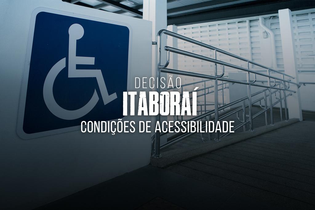 O Ministério Público do Estado do Rio de Janeiro (MPRJ), por meio da Promotoria de Justiça de Proteção ao Idoso e à Pessoa com Deficiência do Núcleo Niterói, obteve decisão favorável à ação civil pública ajuizada para que o Município de Itaboraí e a Câmara Municipal de Itaboraí adequem seus edifícios públicos para a acessibilidade dos deficientes físicos e, ainda, todo o mobiliário urbano da cidade. A 1ª Vara Cível da Comarca de Itaboraí concedeu prazo de 200 dias para que as medidas sejam adotadas e determinou que a Prefeitura inclua, imediatamente, nas análises de pedidos de alvarás protocolizados e nas fiscalizações que sejam realizadas nos estabelecimentos licenciados, condições de acessibilidade.