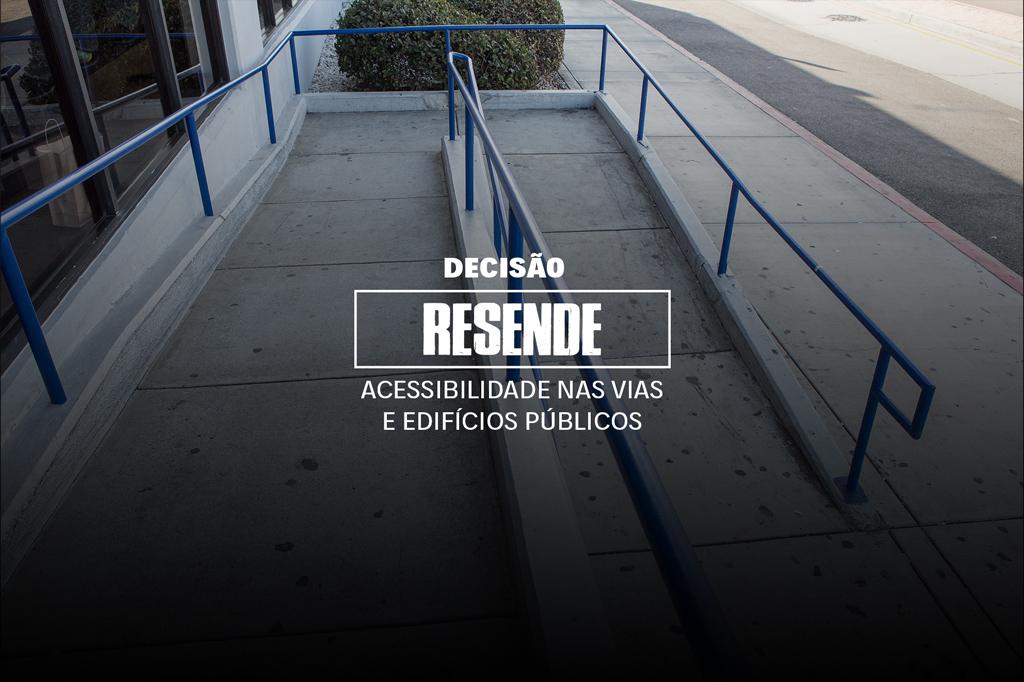 Dessa forma, o Juízo determinou ao município de Resende que adote as providências para a realização de tais obras de adaptação nas vias, espaços públicos e edifícios de uso público de sua propriedade, e naqueles que estejam sob sua administração ou uso, com vistas a garantir o direito à acessibilidade das pessoas com deficiência e com mobilidade reduzida, nos termos da Lei Federal nº 10.098/00, da Lei Federal nº 10.068/00, do Decreto nº 5.296/06, da Lei Estadual nº 4.224/03, da Lei Orgânica Municipal e, principalmente, dos arts. 227, § 2º, e 244, da Constituição Federal, no prazo máximo de 180 dias, com aplicação de multa diária no valor de R$ 1 mil pelo atraso no cumprimento da decisão.