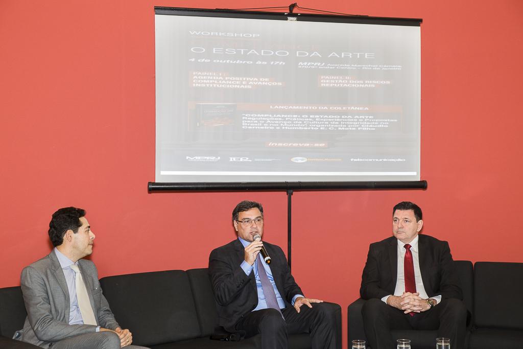 O Ministério Público do Estado do Rio de Janeiro (MPRJ) sediou na tarde desta sexta-feira (04/10) o lançamento do livro “Compliance: O estado da arte. Regulações, práticas, experiências e propostas para o avanço da cultura da integridade no Brasil e no mundo”, organizado por Cláudio Carneiro e Humberto Mota Filho com artigos escritos por diferentes autores. Um dos artigos integrantes do livro, “O Ministério Público e a cultura da integridade na era da tecnologia da informação”, foi escrito pelo procurador-geral de Justiça, Eduardo Gussem, e pelo assessor da Coordenadoria de Análises, Diagnósticos e Geoprocessamento do MPRJ, Matheus de Alencar.