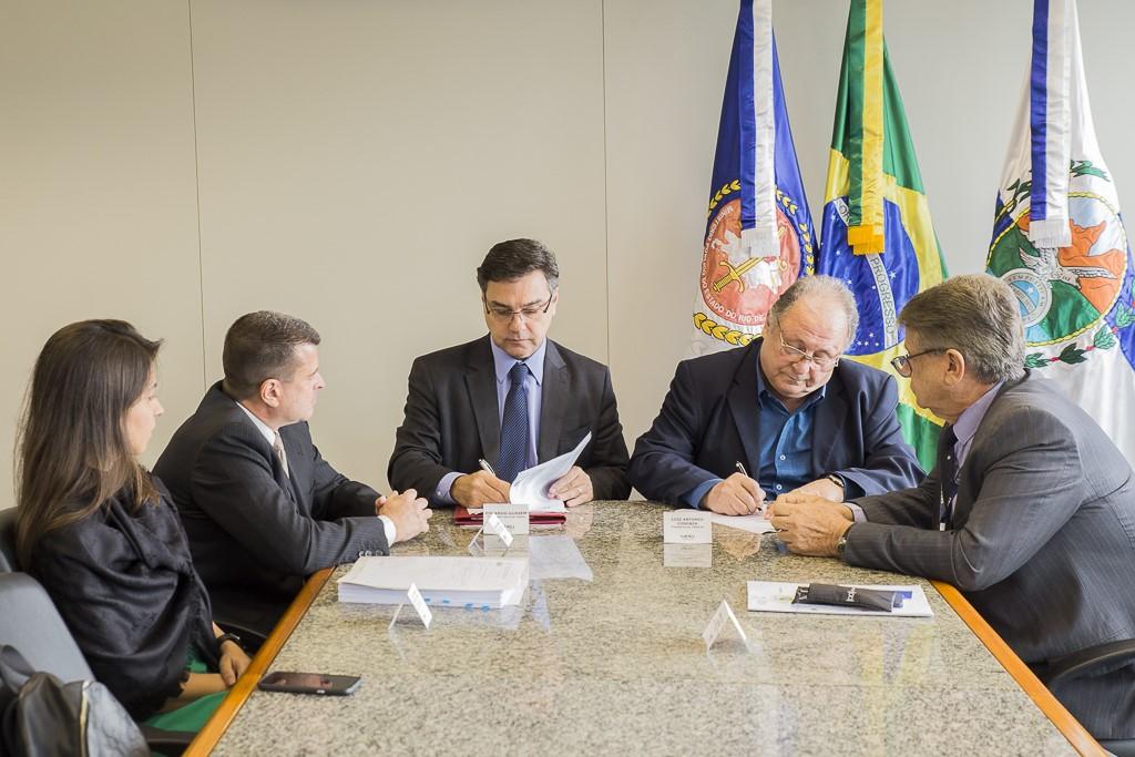 O Ministério Público do Estado do Rio de Janeiro (MPRJ), por meio do Grupo de Atuação Especializada do Desporto e Defesa do Torcedor (GAEDEST/MPRJ), assinou, na manhã desta sexta-feira (18/10), Termo de Cooperação Técnica com o Conselho Regional de Engenharia e Agronomia do Rio de Janeiro (CREA-RJ), a quem caberá auxiliar o parquet fluminense na análise dos laudos de engenharia dos estádios de futebol do estado. Na ocasião, o presidente do CREA-RJ, Luiz Antonio Cosenza, foi recebido pelo procurador-geral de Justiça, Eduardo Gussem, que falou da importância da parceria. “A sociedade só tem a ganhar quando instituições optam por trabalhar de forma conjunta, com troca de experiências, conhecimentos e aprendizado”, pontuou.