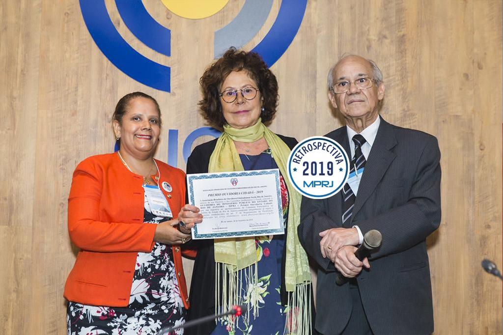 O Ministério Público do Estado do Rio de Janeiro (MPRJ), por meio da Ouvidoria, recebeu nesta quinta-feira (28/11), durante o 3º Encontro Estadual de Ouvidores do Estado, o prêmio “Ouvidoria Cidadã”, concedido pela Associação Brasileira de Ouvidores, seção Rio de Janeiro, em reconhecimento aos esforços do Parquet para oferecer aos cidadãos do Estado um canal aberto de diálogo para ouvir suas demandas. A ouvidora do MPRJ, a procuradora de Justiça Denise Fabião Guasque, palestrou durante o evento, que teve como tema “Ouvidorias em Rede: Interatividade como Estratégia de Consolidação no Estado”, e recebeu o prêmio em nome da instituição.
