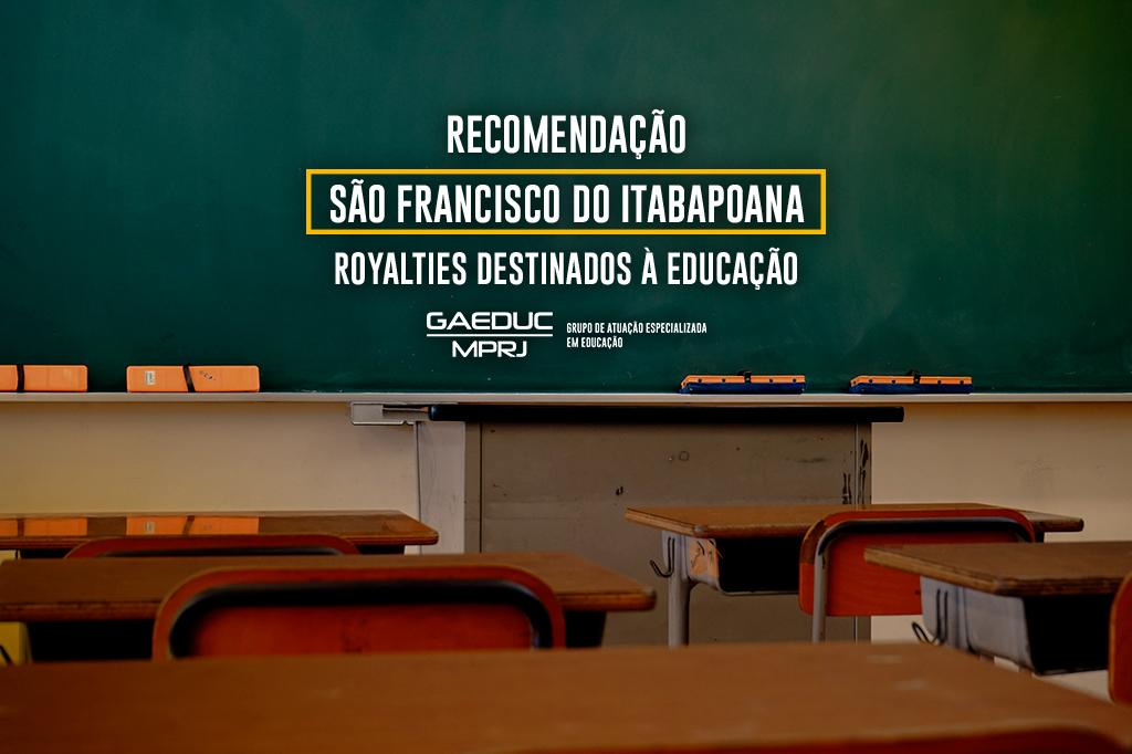 O Ministério Público do Estado do Rio de Janeiro (MPRJ), por meio do Grupo de Atuação Especializada em Educação (GAEDUC/MPRJ), expediu, no dia 20 de abril, Recomendação ao município de São Francisco de Itabapoana para que seja promovida a completa segregação financeira e garantida a correta aplicação dos recursos recebidos a título de Royalties e Participações Especiais e que se destinem ao custeio de ações de manutenção e desenvolvimento do ensino.