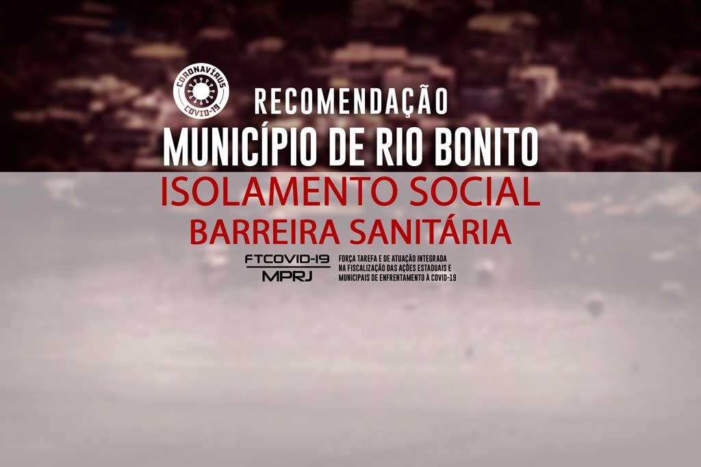O Ministério Público do Estado do Rio de Janeiro, por meio da Força-Tarefa de Atuação Integrada na Fiscalização das Ações Estaduais e Municipais de Enfrentamento à COVID-19 (FTCOVID-19/MPRJ) e da 1ª Promotoria de Justiça de Tutela Coletiva do Núcleo Itaboraí, expediu duas recomendações ao Município de Rio Bonito. Na primeira, em que também atua a 2ª Promotoria de Justiça de Tutela Coletiva da Saúde da Região Metropolitana II, o MPRJ recomenda que o município não dê início à flexibilização das medidas de restrição ao contato social. Na segunda, a recomendação é para que sejam cumpridas medidas para a adoção de barreira sanitária que possam reduzir os impactos à mobilidade urbana em razão de um cenário de restrição de circulação.