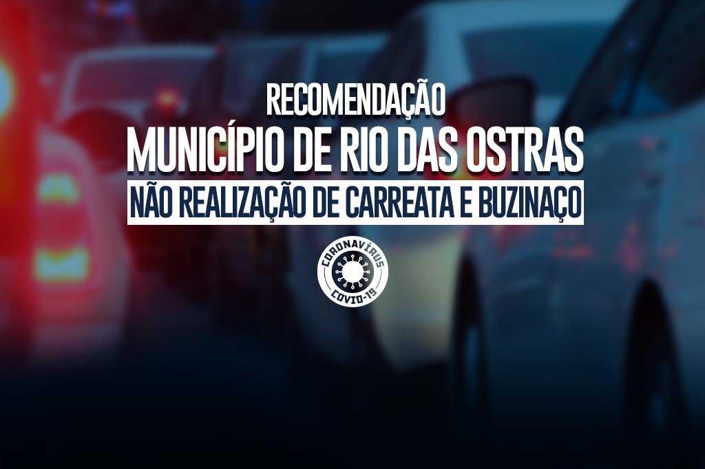 O Ministério Público do Estado do Rio de Janeiro (MPRJ), por meio da 1ª Promotoria de Justiça de Tutela Coletiva do núcleo Macaé, expediu, na segunda-feira (04/05), Recomendação ao prefeito de Rio das Ostras, para que sejam adotadas, nas respectivas esferas de competência, todas as providências necessárias para evitar a carreata e o buzinaço marcados para o dia 7 de maio, às 10 horas, evitando-se com isso propagação de maiores níveis de infecção pela COVID-19 na cidade de Rio das Ostras.