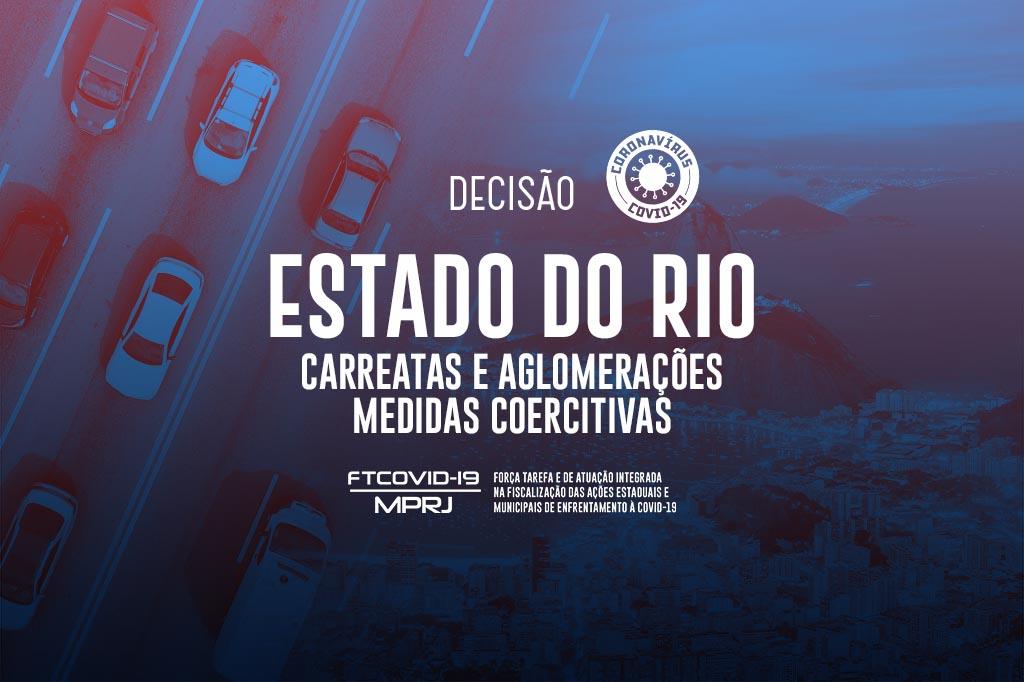 O Ministério Público do Estado do Rio de Janeiro (MPRJ), por meio da 3ª Promotoria de Justiça de Tutela Coletiva da Cidadania e da Força Tarefa de Atuação Integrada na Fiscalização das Ações Estaduais e Municipais de Enfrentamento à Covid-19 (FTCOVID-19/MPRJ), obteve decisão judicial para aplicar multa de R$ 50 mil a organizadores de manifestações em locais públicos em todo Estado do Rio de Janeiro, incluindo na capital e em Niterói, durante a vigência das normativas de distanciamento social. O MPRJ já havia obtido decisão semelhante para todo o Estado no bojo da mesma ação civil pública ajuizada, tendo o Judiciário proibido a realização de atos com aglomeração de pessoas, como manifestações, carreatas, passeatas e afins, com obrigação do Estado para fiscalizar e coibir tais atos.