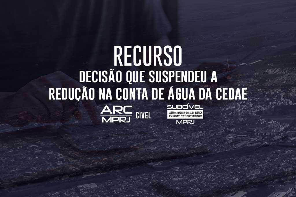 No agravo interposto na ACP que trata da redução do valor da conta da Cedae, o MPRJ ressalta que não foram observados requisitos legais durante a tramitação do procedimento, como o acesso aos documentos que teriam instruído o recurso do Estado e a notificação das partes quanto ao teor da decisão que suspendeu a execução. O MPRJ também demonstra a ilegitimidade do Estado em postular a medida de suspensão de decisão proferida em primeira instância, uma vez que a determinação judicial tinha como destinatária a Cedae.