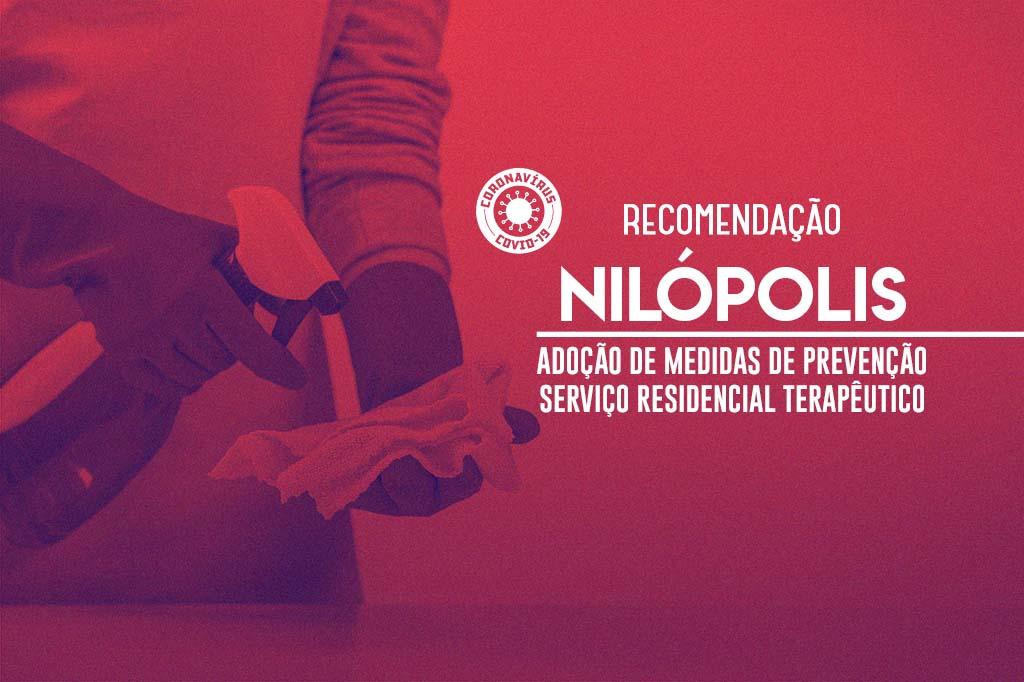 O conjunto de medidas recomendadas pelo MPRJ à Secretaria de Saúde de Nilópolis inclui que seja adotada, com a devida frequência, medidas de desinfecção dos ambientes e dos objetos pessoais dos residentes; monitorados os residentes, a fim de detectar sintomas de síndrome gripal, empregando Protocolo Assistencial da Atenção Primária à Saúde; garantido o fluxo e o transporte sanitário dos moradores às referências hospitalares, em tempo hábil, em caso de necessidade; promovido o acesso contínuo das equipes de Atenção Básica aos moradores; providenciados ambientes ou espaços de isolamento de comunicantes assintomáticos, de casos confirmados e suspeitos; e feita a coleta de material biológico para teste diagnóstico da Covid-19.