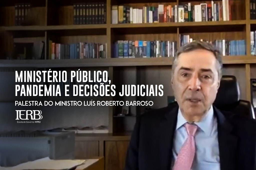 O Ministério Público do Estado do Rio de Janeiro (MPRJ), por meio do Instituto de Educação Roberto Bernardes Barroso (IERBB/MPRJ), transmitiu, na tarde desta sexta-feira (19/06), a palestra 'Ministério Público, pandemia e decisões judiciais', com Luís Roberto Barroso. A transmissão ao vivo ocorreu pelo canal do IERBB/MPRJ no YouTube. Ministro do Supremo Tribunal Federal (STF), Barroso é mestre (pela Yale Law School, EUA) e doutor (Uerj) em Direito, palestrante e autor de diversas obras jurídicas e destacados artigos acadêmicos. É o atual presidente do Tribunal Superior Eleitoral (TSE).