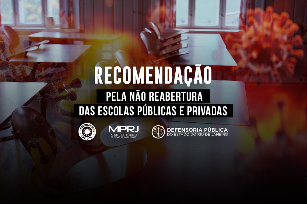 O Ministério Público do Estado do Rio de Janeiro, por meio da 1ª e da 3ª Promotorias de Justiça de Tutela Coletiva de Proteção à Educação da Capital, e a Defensoria Pública do Estado emitiram Recomendação ao prefeito Marcelo Crivella para que mantenha as medidas restritivas de isolamento nas unidades de ensino da rede municipal e nas escolas e creches privadas.
