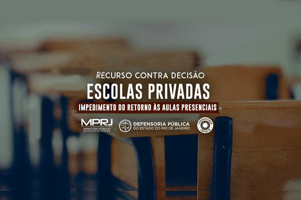 O Ministério Público do Estado do Rio de Janeiro (MPRJ), por meio da 3ª Promotoria de Justiça de Tutela Coletiva de Proteção à Educação da Capital, e a Defensoria Pública do Estado (DPRJ) interpuseram recurso contra decisão do Plantão Judiciário, que negou pedido de liminar, para suspender os efeitos do decreto do Município do Rio que autoriza a reabertura das escolas privadas a partir de 1º de agosto. A decisão foi proferida neste domingo (02/08), no âmbito de ação civil pública ajuizada pelo MPRJ e pela DPRJ. Os dois órgãos recorreram ao Plantão Judiciário noturno e esperam conseguir uma liminar que impeça as atividades escolares presenciais.