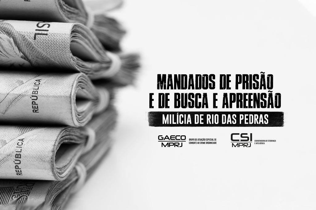 O Ministério Público do Estado do Rio de Janeiro (MPRJ), por meio do Grupo de Atuação Especial no Combate ao Crime Organizado (GAECO/MPRJ), com o apoio da Coordenadoria de Segurança e Inteligência (CSI/MPRJ) e da Secretaria de Administração Penitenciária (SEAP), realiza nesta quarta-feira (02/09) a operação “Intocáveis III”. O objetivo é cumprir mandados de prisão preventiva contra três, dos seis denunciados à Justiça pelos crimes de organização criminosa e lavagem de dinheiro, além de 14 mandados de busca e apreensão. Os denunciados integram a milícia que atua em Rio das Pedras e adjacências. A denúncia foi recebida pela 1ª Vara Criminal Especializada da Capital, que deferiu as medidas cautelares.
