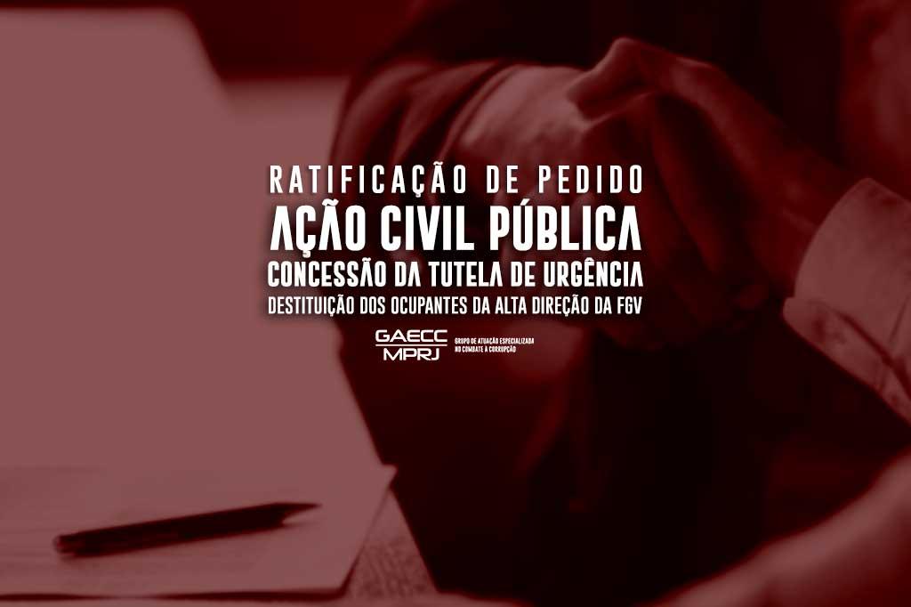 O Ministério Público do Estado do Rio de Janeiro (MPRJ), por meio do Grupo de Atuação Especializada no Combate à Corrupção (GAECC/MPRJ) e da 3ª Promotoria de Justiça de Fundações, encaminhou ao juiz da 28ª Vara Cível da Capital os esclarecimentos determinados na decisão proferida na ação civil pública que ajuizou em que pede a destituição dos integrantes da alta direção da Fundação Getúlio Vargas (FGV). O pedido decorre das ilegalidades que esses integrantes praticam na administração da entidade desde o ano de 2006, em que a FGV foi contratada pelo Estado RJ para a precificação das ações do BERJ, e que se prolongam até os dias de hoje. Nesta manifestação, todos os pedidos da petição inicial foram ratificados, inclusive a tutela de urgência, em que se pede o imediato afastamento dos réus dos cargos que ocupam na Fundação.